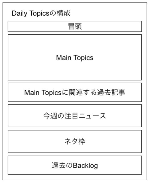 テーマを固定してしまうと、ネタが思いつかない時に書きにくくなるのであくまで目安として、多少の前後、飛ばしたりがあると思いますがだいたいこんな感じで回します。まぁ、いろいろ試しながらやりやすい方法を模索します