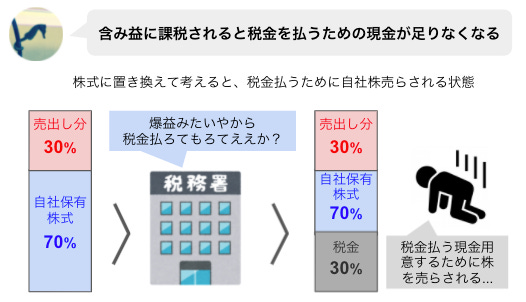 これでは国が**「お前金払われへんかったら、自社株でも売って現金用意せぇや!ぼけ!」**と言っているのと同じです。(違う)